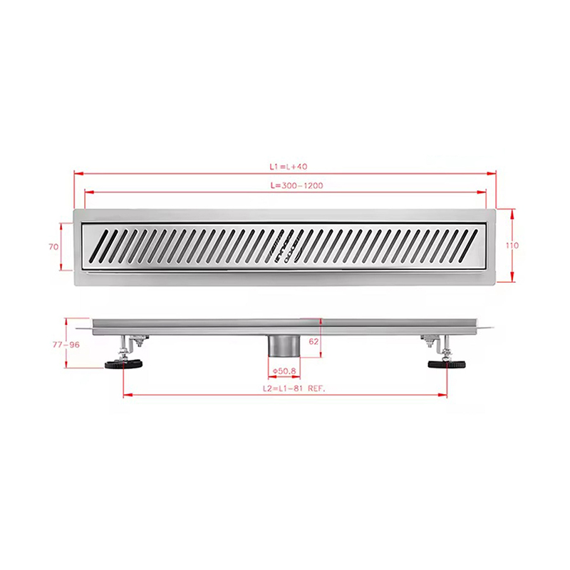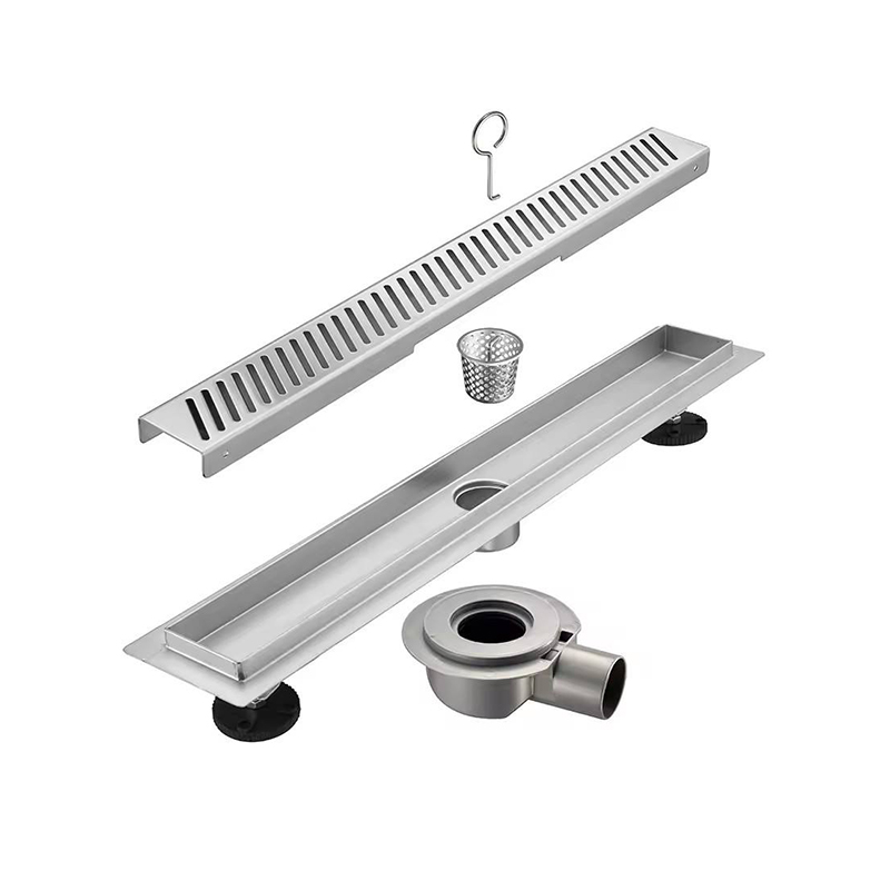 首页 / 产品中心 / 地漏 / 10 英寸现代线性不锈钢淋浴排水法兰 360 度 304 地漏酒店浴室格栅过滤器