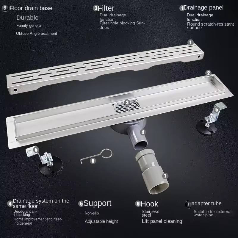 首页 / 产品中心 / 地漏 / 10 英寸现代线性不锈钢淋浴排水法兰 360 度 304 地漏酒店浴缸格栅过滤器