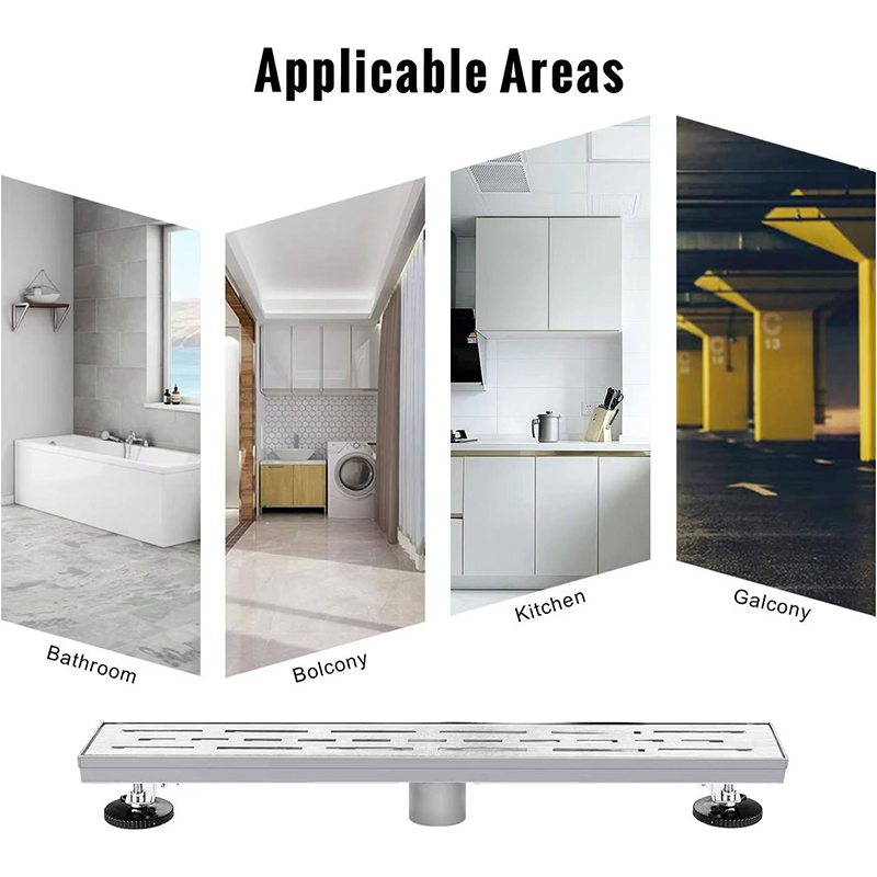 • 24 英寸现代线性不锈钢 304 淋浴排水法兰防臭过滤器瓷砖插入地漏