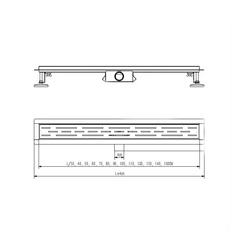 首页 / 产品中心 / 地漏 / 28 英寸哑光黑色线性淋浴排水法兰 304 不锈钢酒店浴室浴缸地漏